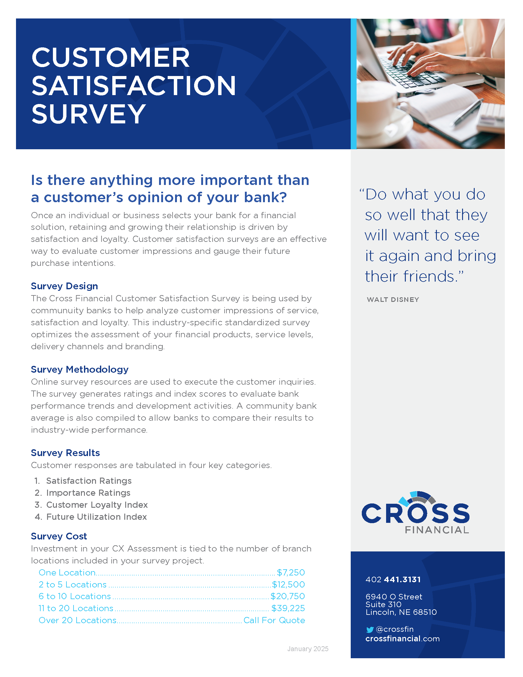 If customer satisfaction, client retention and relationship expansion are priorities for your organization, your best source of information is existing customers. A customer experience assessment gives you a standardized, industry-tested survey to measure customer satisfaction, loyalty via a Net Promoter Score, along with a Future Utilization Index and demographics by age, tenure and branch usage.