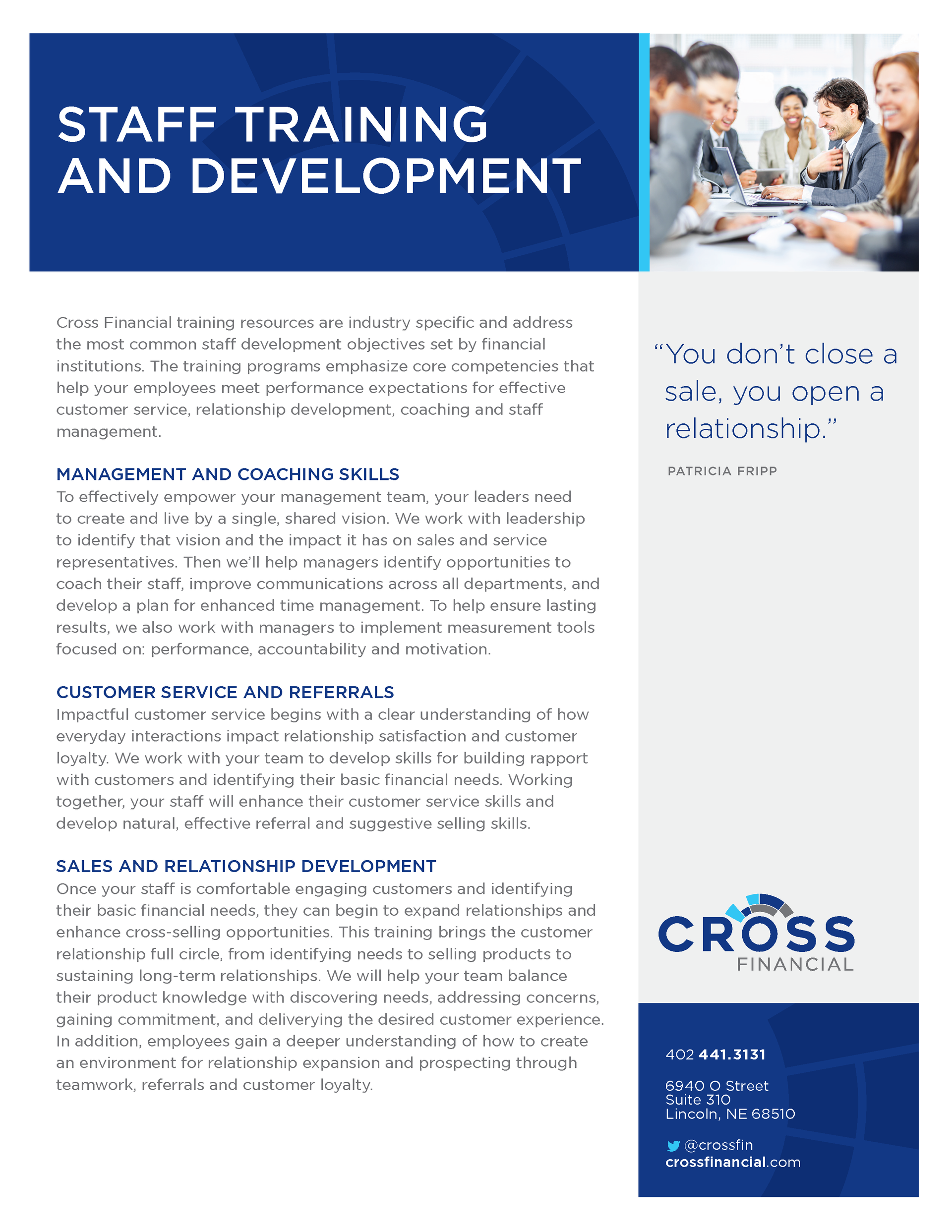 Developing competent, highly skilled human resources is critically important to companies in a service-based industry. When staff development is the objective, balancing your education opportunities and techniques between internal resources and external expertise is the biggest challenge. We have proven training programs designed specifically for financial institution employees. Each program is customized to meet your training objectives.
